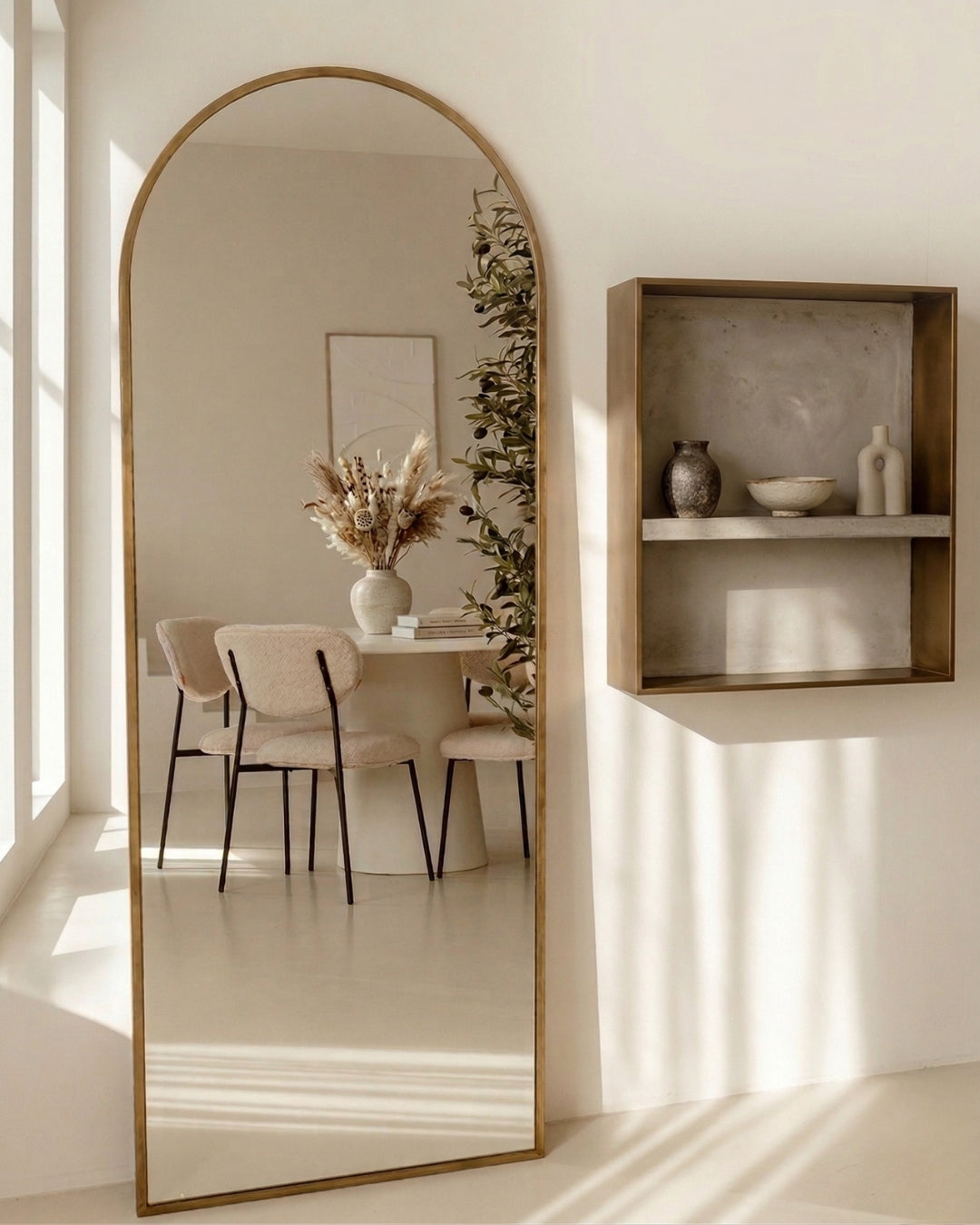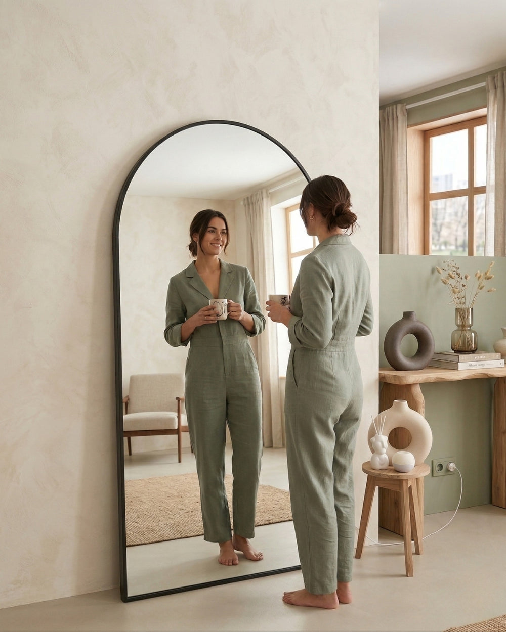 Of het nu nonchalant tegen een slaapkamerwand staat of als blikvanger in de hal fungeert, onze collectie past zich aan je levensstijl aan. De strakke lijnen van ClaireMirror harmoniëren perfect met zowel industriële als Scandinavische interieurs. Het is de finishing touch die van een huis een stijlvol thuis maakt.